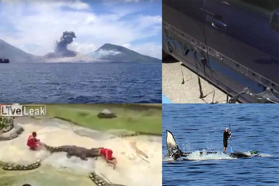 1 - Erupção vulcânica em Papua Nova Guiné - Em agosto de 2015, um australiano de 58 anos, chamado Phil McNamara, estava a bordo de um pequeno barco perto do Monte Tavurvur, um vulcão localizado na costa de Papua Nova Guiné. Ele teve a sorte de capturar imagens espetaculares da erupção do vulcão. A gravação mostra uma nuvem de cinzas lançada ao ar e uma grande explosão.